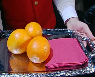 Обсуждение: «австралийский оперный театр!», - на первой же секунде говорит Александр Голиков и Владимир Улахович почти одновременно. Далее команда рассуждает о том, что ещё можно сделать с апеьлсинами. О 5-ти апельсиновых косточках в Куклус-Клане вспоминает Илья Бер. К концу минуты основной темой обсуждения является способ порезки апельсинов.