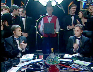 - Против команды знатоков играет преподаватель Михаил Скипский, член элитарного клуба «Что? Где? Когда?», город Санкт-Петербург, Россия