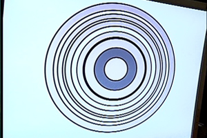 Обсуждение: «в центр, наверное, записывается самое важное…», - начинает рассуждать Павел Свердлов, «как пирамида потребностей Маслоу», - подхватывает Вячеслав Лисицын, Инна Семёнова обращает внимание на то, что герой вопроса – бизнесмен, «записывает телефоны, адреса», - говорит она. Юрий Филиппов говорит о том, что это может быть что-то связанное с компьютерами - Windows, например. Звучат версии об органайзере, таблицах Excel, после чего команда возвращается к изображению. Замечая, что круги различаются по цвету и толщине, команда продолжает придумывать версии, но ничего убедительного не появляется.