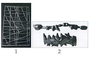 Обсуждение: «это карта», - первая версия Инны Семёновой, у Юрия Филлипова, Вячеслава Лисицына и Алексея Самулёва появляются идеи о приспособлениях для ловли рыбы: удочка, сети крючок, Павел Свердлов говорит, что 2-ое похоже на расческу. Вячеслав Лисицын говорит о том, что первое – это сети. Инна Семёнова, в то же время, говорит, что 2-ое похоже на горы, но её, похоже, никто не слышит. Дальше появляются идеи о том, что такими приспосблениями можно скоблить шкуры, рубить лёд, промывать золото, соскребать кокосы.