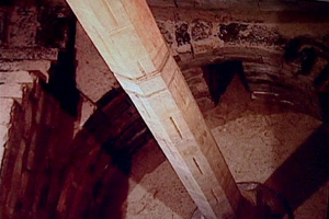 Три небольших канала соединяют этот колодец с Нилом, а по рельефам на столбе можно определить, как высоко поднялась вода. Это сооружение – ниломер, с его помощью определяли уровень ежегодного разлива Нила. От высоты разлива зависел урожай и, соответственно, устанавливались налоги.