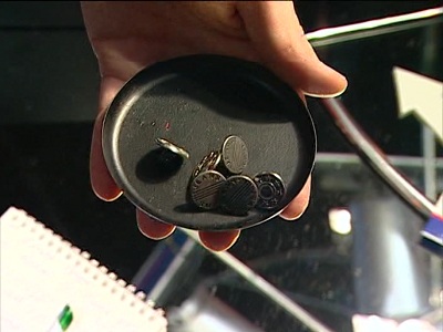 Обсуждение: Максим Русов, Максим Беспалов и Сергей Горбунов одновременно произносят: «Мелкие монеты»! Затем звучат варианты: «брюки без карманов» (Сергей Горбунов), «эти монетки во что-то бросали, вставляли», «игровой автомат», «что-то, что нашивали на одежду» (Евгений Шляхов), «ожерелье из монеток», «бижутерия» (Ольга Резницкая), «металл какой-то, например, алюминий» (Максим Беспалов).