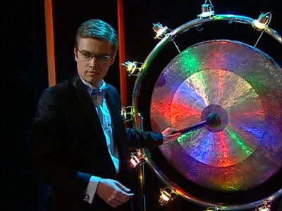 Отвечает Александр Голиков: на Востоке есть множество практик, одна из таких практик – это практика правильного дыхания. Допустим, что он должен был дышать в ритм.Господин ведущий просит господина Голикова подойти к гонгу и продемонстрировать тихие и размеренные удары. В процессе господин ведущий задаёт господину Голикову провокационные вопросы и просит Александра отвечать на них, не сбиваясь с выбранного заранее темпа ударов.