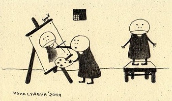 Посмотрите на экран!И ответьте через 20 секунд, какой зарубежный писатель на этом рисунке пробует себя в роли художника?