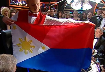 Перед вами государственный флаг Филиппин. Вот так он выглядит сейчас.