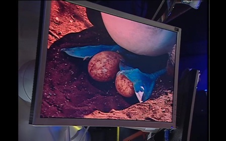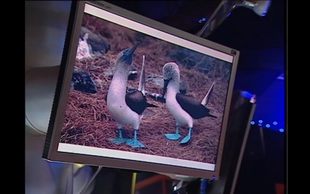Обсуждение: Анатолий Бугаев: «Может, они танцуют?». Сергей Горбунов: «Она может маскироваться – они синие, как небо». Павел Свердлов: «Закрывают что-то?». Анатолий Бугаев: «Перепонки становятся больше, может она с яйцами что-то делает? Держит, переносит?». Алексей Блинов: «Держит во время полета?». Анатолий Блинов: «Либо она ходит, либо летает». Сергей Горбунов: «Может она лапами рыбу глушит?». Анатолий Бугаев: «Скажите, а приток крови у нее – от чего?». Алексей Блинов: «Ей надо двигаться каким-то образом». Анатолий Бугаев: «Может она рулит ими как-то во время полета? Хвост у нее, смотрите, короткий!».