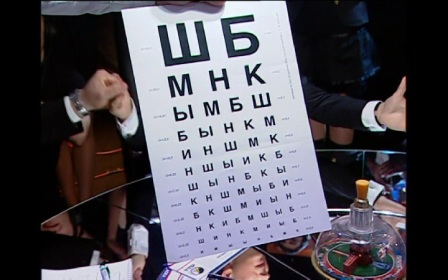 Обсуждение: Сергей Сивохо: «Шуба, манка?». Анатолий Яцечко: «Салат?». Александр Педан: «Ман-ка? Ну тогда салат». Валерий Жидков: «Это не могла быть проверка на зрение, вот эта таблица?». Сергей Сивохо: «Ш, М! Да!». Александр Крикун: «Версии еще!». Валерий Жидков: «А перестал почему? Не видел дальше? Там буква У разве есть?». Сергей Сивохо: «Нет, там Ш, М и дальше». Анатолий Яцечко: «Увидел маму в шубе?». Александр Крикун: «Точно никак с кулинарией не связано? В какую тему еще можем уйти?».