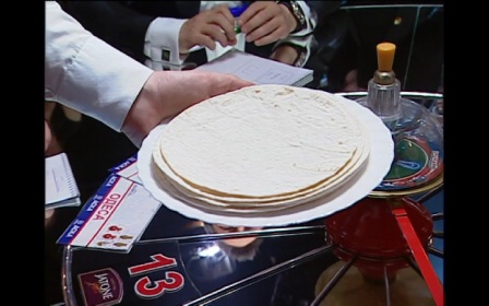 Обсуждение: Валерий Жидков: «Профессия американцев? Во время работы незаменима!». Александр Педан: «Она тонкая, куда ее можно?». Александр Крикун: «Что удобно ею делать?». Сергей Сивохо ест тортилью. Валерий Жидков: «Зачем нас попросили оторвать кусочек?». Сергей Сивохо: «Карман?». Александр Педан: «Ее можно сложить!». Валерий Жидков: «Нас попросили назвать профессию! Что человек может делать? Как платок, может быть?». Александ Педан: «Военные?». Андрей Шевченко: «Спецовка какая-то тонкая, чтобы в ней держать?». Александр Крикун: «Полицейские?». Анатолий Яцечко: «Бухгалтер? Полицейский, пожарный, врач?».
