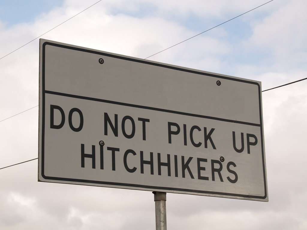 - Против вас играет менеджер Светлана Гилман, город Маунт Проспект, СШАПосмотрите на экран!Такой плакат можно увидеть на некоторых автомагистралях в США. На его нижней половине написано: "Не подбирайте попутчиков". А верхняя часть, сейчас от вас закрытая, объясняет, почему этого не надо делать.Внимание, вопрос!Что, согласно надписи на плакате, находится совсем недалеко от шоссе?Обсуждение: Сергей Галибин: «Сумасшедший дом?». Сергей Сивохо: «Кладбище!». Александр Крикун: «Тюрьма!». Ольга Цибульская: «На некоторых автомагистралях США! Почему на некоторых?». Сергей Галибин: «Заражение какое-то?». Сергей Сивохо: «Душевнобольные больше нравятся!». Елена Говорова: «Что на плакате? Некоторые автомагистрали!». Сергей Сивохо: «С чем-то это соотносится? Побег?». Елена Говорова: «Не подбирайте попутчиков? Что, согласно надписи, находится рядом?». Сергей Сивохо: «Тюрьма или больница?».Отвечает Сергей Сивохо: тюрьма.Внимание, правильный ответ!На нижней части плаката написано: "Не подбирайте попутчиков". А на верхней – давайте посмотрим: "В этом районе находится ТЮРЬМА!"