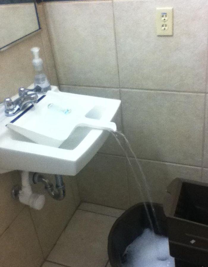 Что с помощью совка, опущенного в раковину, делают жильцы этой квартиры?