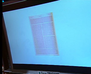 Обсуждение: «Windows», - предлагает Алесь Мухин, « а это не дифтонг буквы Е, такая буква есть в некоторых языках» - рассматривает картинку Илья Новиков, к новому году «08», - предлагает Борис Левин, «очень хорошо на окно похоже», - снова обращает внимание Алесь Мухин. «это похоже на поле для тенниса или бадминтона!», - говорит Борис Бурда, версию поддерживает команда.