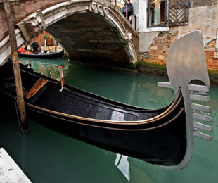 «Ферро» возвышается над носом гондолы, это самая верхняя отметка лодки. С помощью «ферро» гондольер ОЦЕНИВАЕТ, пройдет ли лодка под очередным невысоким мостиком.