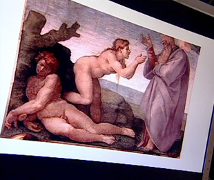 Перед вами фреска Сикстинской капеллы. Некоторые искусствоведы считают, что на ней изображен именно тот момент, когда Всевышний вдохнул жизнь в Еву. А в качестве аргумента демонстрируют одеяние Всевышнего.