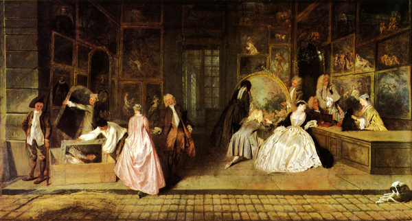 Перед вами картина "Вывеска лавки Жерсена" . Написал ее французский живописец, мастер эпохи рококо Антуан Ватто.