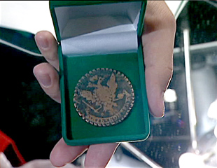 Обсуждение: «орёл-решка?», - первым звучит голос Виктора Никулина, «а печать это не может быть?» - предполагает Илья Бер, Владимир Улахович обращает внимание на боковые насечки на монете но «сейчас они на любой монете есть», - возражает Илья Бер. К середине обсуждении команда задаётся вопросом о том, почему спросили именно Ирину Буковцеву, Илья Бер задумывается о косметике, а Ирина Буковцева всё ещё просит, чтобы ей дали рассмотреть монету. Получив монету, Ирина замечает, что она стёрта с одной стороны и предполагает, что ею могли что-то стирать, также она определяем номинал монеты – 5 копеек. Дальнейшие рассуждения команды не приводят к появлению новых правдоподобных версий.