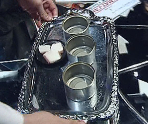 Обсуждение: команда сразу понимает, что всё дело в качке, «подставляли под треногу и крепили на палубу», - говорит Григорий Алхазов, Арсен Малиновский демонстрирует смазывание салом дна консервной банки, Анатолий Бугаев отмечает, что там было шумно, Дмитрий Литвинов – наоборот – предлагает создать дополнительные шумовые эффекты, Ирина Чернуха предлагает даже использовать сало вместо беруш.