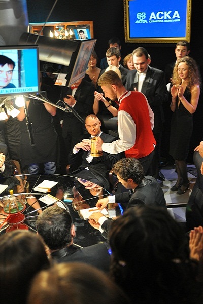 Звание лучшего игрока в Юбилейной программе «Что? Где? Когда?» и приз от интернет- магазина Розетка – ноутбук Lenovo получает капитан команды – Владимир Зеленский.