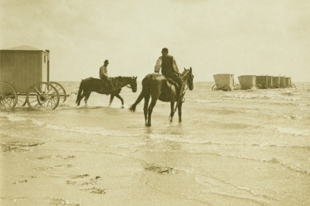 Назовите причину, по которой в хорошую погоду состоятельные дамы нанимали такие повозки и отправлялись в них в море!