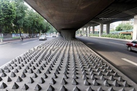 Как вы можете заметить, булыжники находятся на небольшом расстоянии друг от друга. Из-за них невозможно сесть и лечь на землю. Пирамидки поставлены, чтобы под мостом не ночевали бездомные!