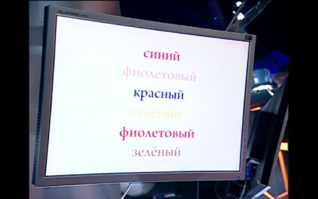 Представьте, что вы шпион и скрываете знание русского. Вас просят назвать эти цвета – по-английски. И вы всё время сбиваетесь на значения слов, которые перед вами. Это тест помогал определить знание РУССКОГО ЯЗЫКА!