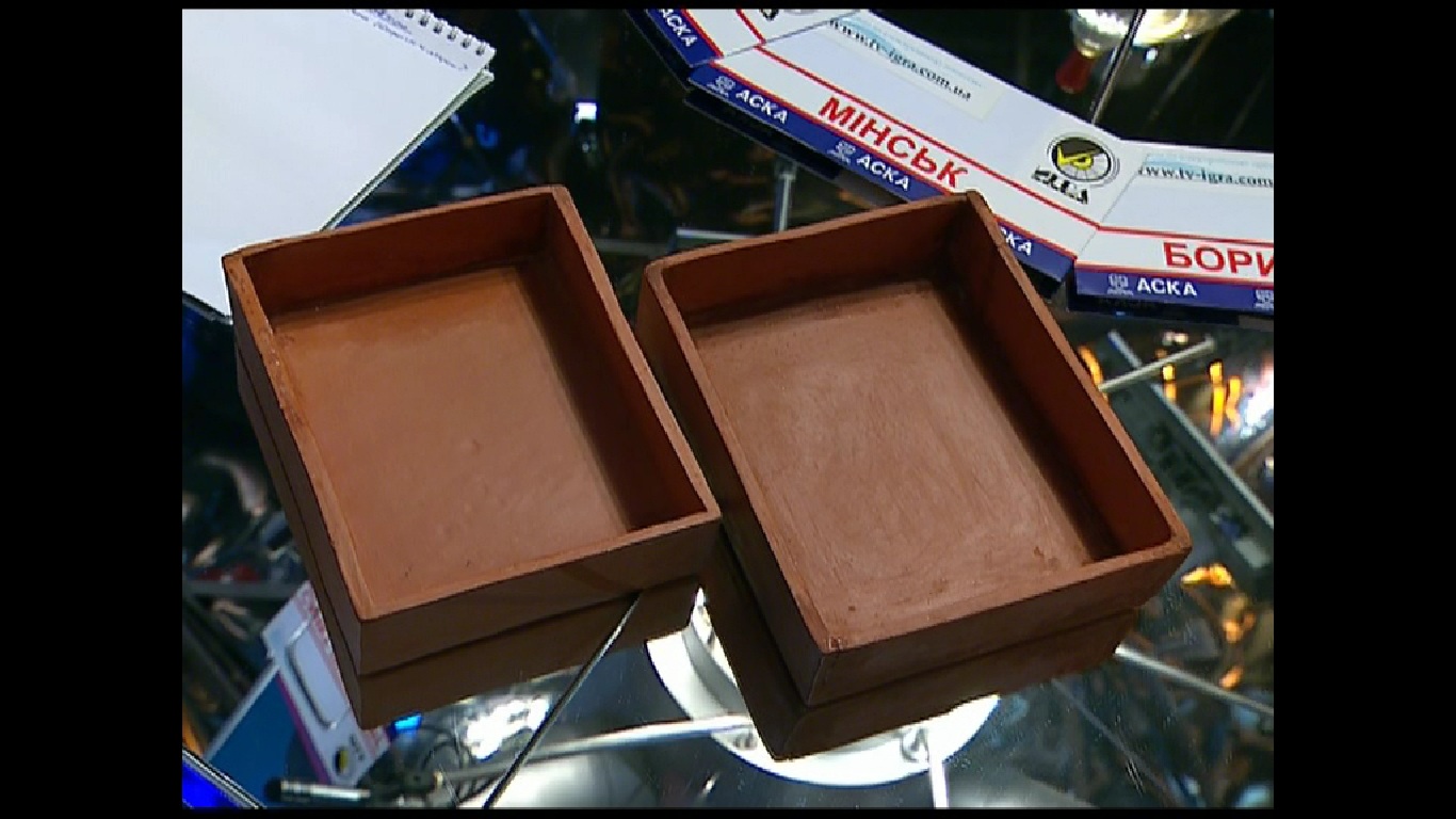Обсуждение: Анастасия Русова: «Кошельки?». Сергей Горбунов: «Обложки?». Александр Голиков кладет предметы один на другой. Илья Бер: «Тут надписей никаки нет?». Сергей Горбунов: «Они сделаны из керамики!». Александр Голиков: «Папка для бумаг? Книжная обложка? Для еды что-то?». Илья Бер: «Монеты носили? Таблички глиняные? Дальше!». Алексей Блинов: «Еда? Продукты питания?». Сергей Горбунов: «Посуда какая-то?». Александр Голиков: «Печь хлеб? Форма для хлеба?». Илья Бер: «Что-то предохраняют от внешней среды!».